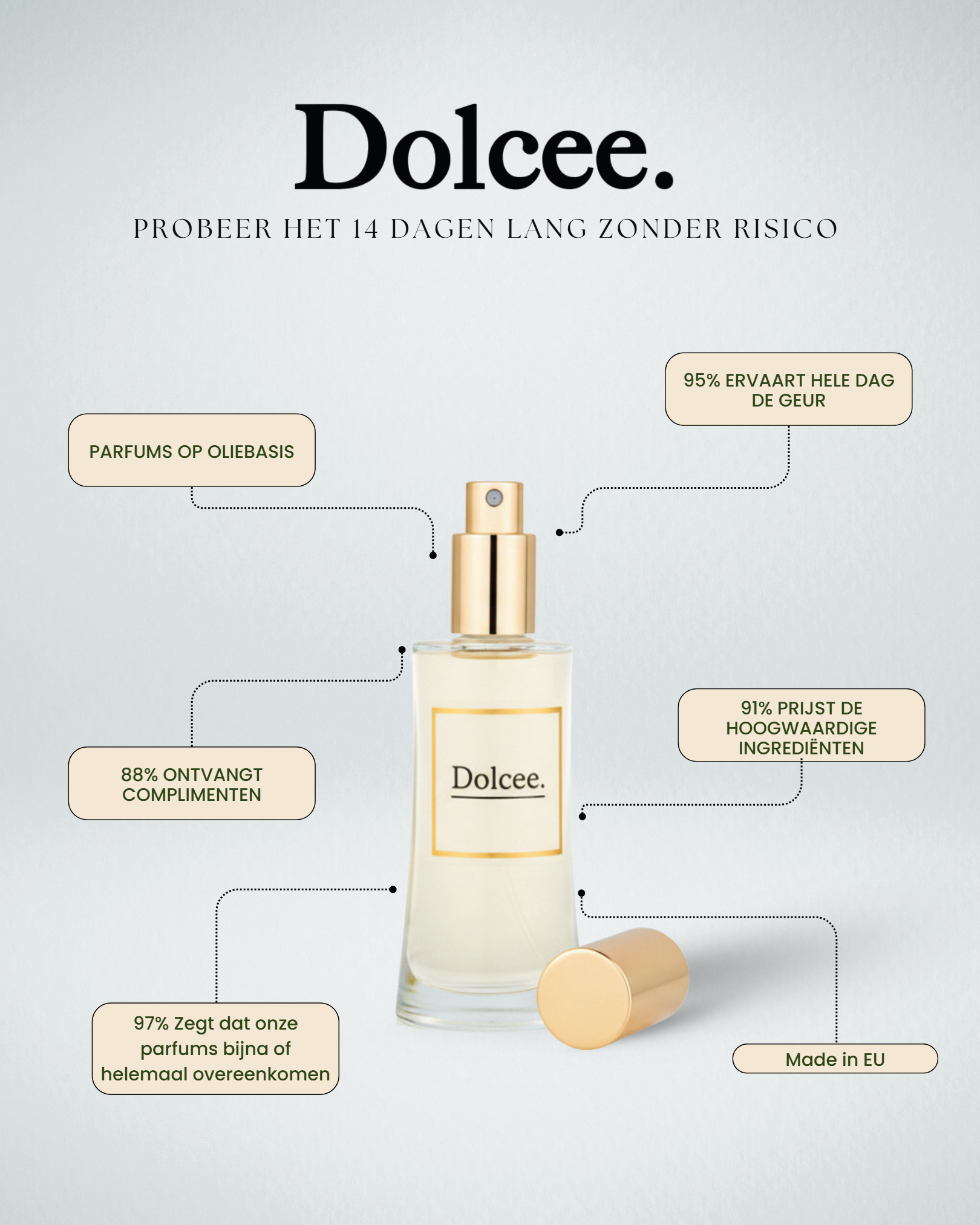 Wij gebruiken ''Parfum'' de hoogste concentratie gecombineerd met de allerbeste alcohol van parfumeurskwaliteit.